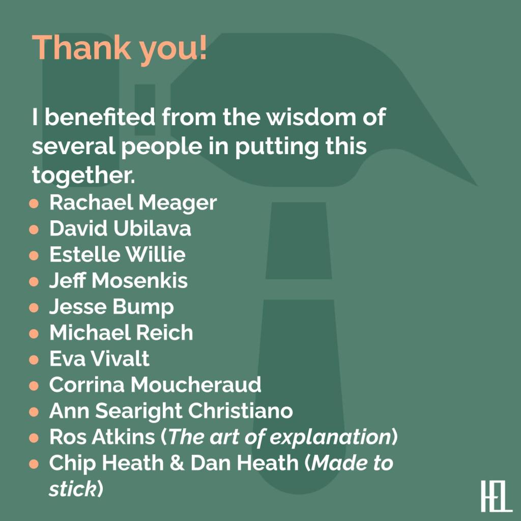 - Build your credibility. Depending on your audience, this may/not (only) be about your credentials. Consider how else you can show (not just tell) your audience why you are a trusted messenger on this topic, such as showing personal connection and experience.