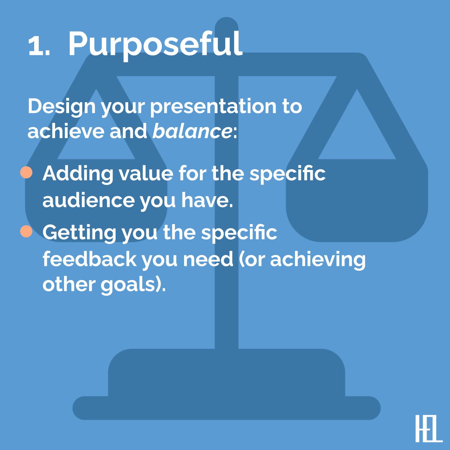 - Presentations should be built to get you the feedback you need (or other goals)